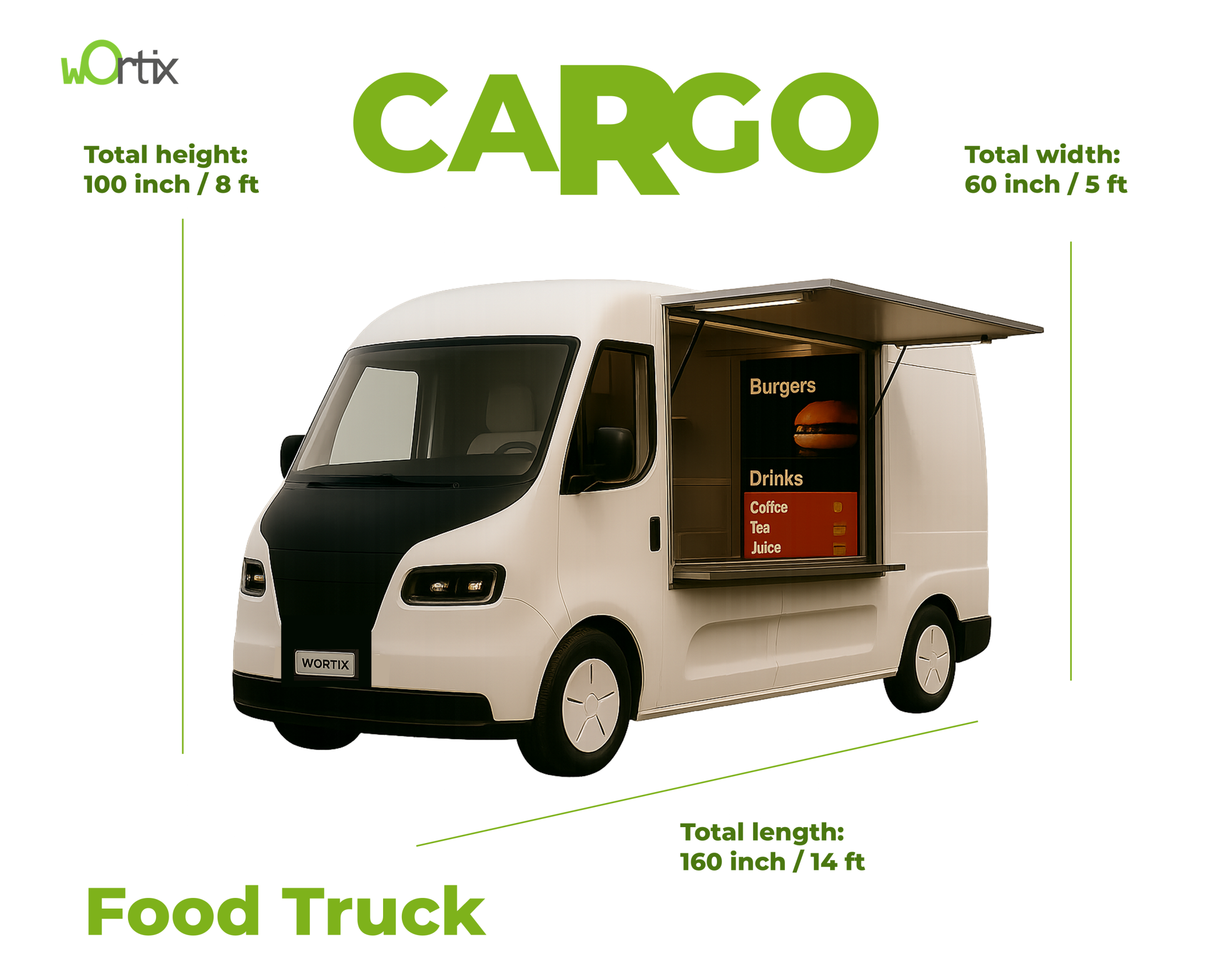 Our Compa EV Food Truck is designed to bring your kitchen to the streets in the most sustainable way possible. With a focus on urban mobility and efficiency, this configuration is perfect for culinary entrepreneurs.